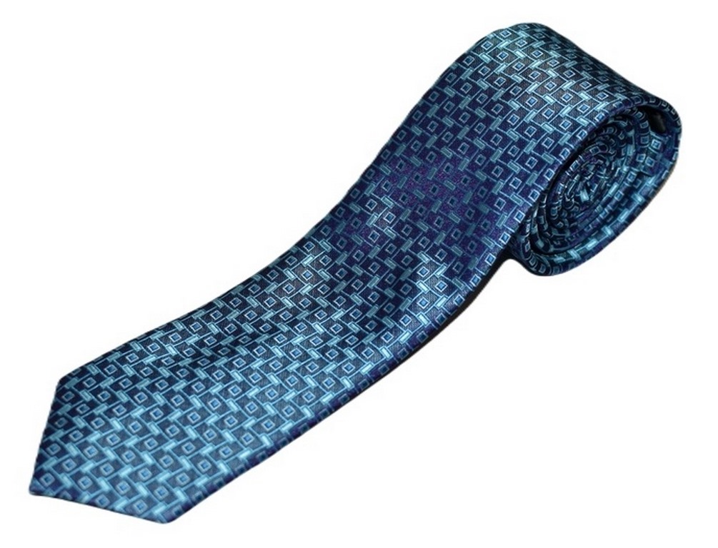 - Modrá kravata se vzorem (obdelníky a čtverce)