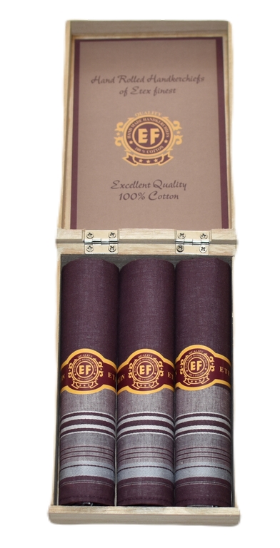 Elegantní pánské kapesníky jsou vhodným dárkem pro vaše blízké. Jsou uložené v dřevěné krabičce, která dodá darovanému dárku prestiž. Jsou vyrobené ze 100% bavlny.